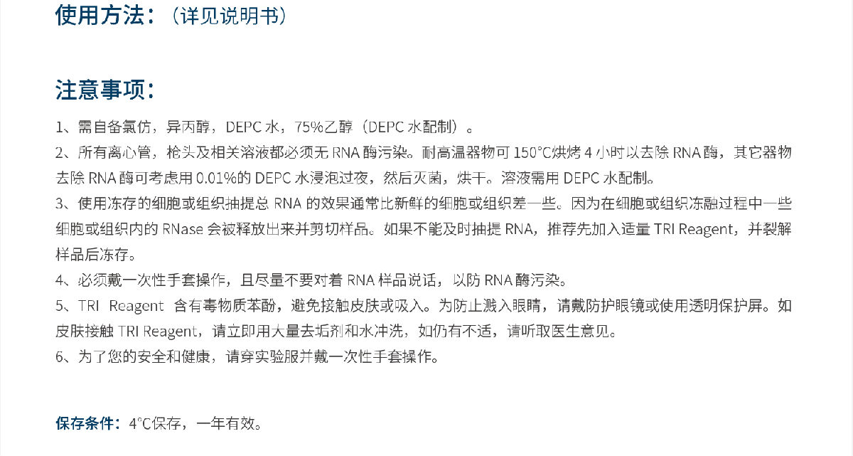 产品名称:Biosharp 总RNA提取试剂